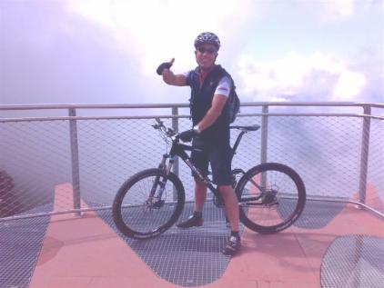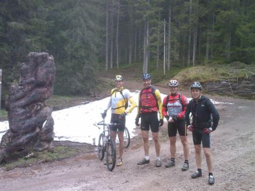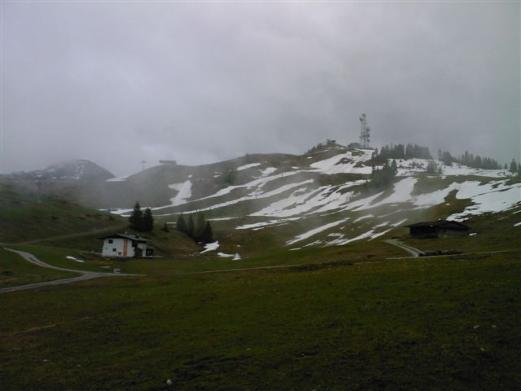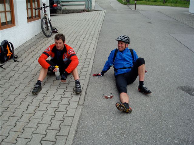So, geschafft! Dann kam die Frage wo Essen wir etwas. Wir haben uns dann entschieden zunächst die 7 km lange Abfahrt ( fast 900 Höhenmeter ) zu absolvieren bevor wir uns dann stärken wollten. Auf der Abfahrt hatte Franki dann erhebliche Probleme mit seiner Felgenbremse, aber seine Belege haben gerade noch bis nach Lofer gereicht. Durchgefroren kamen wir im Ort an.