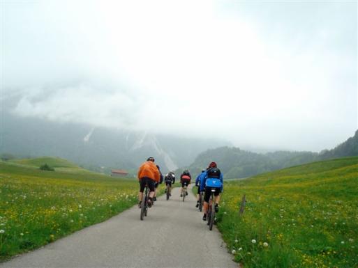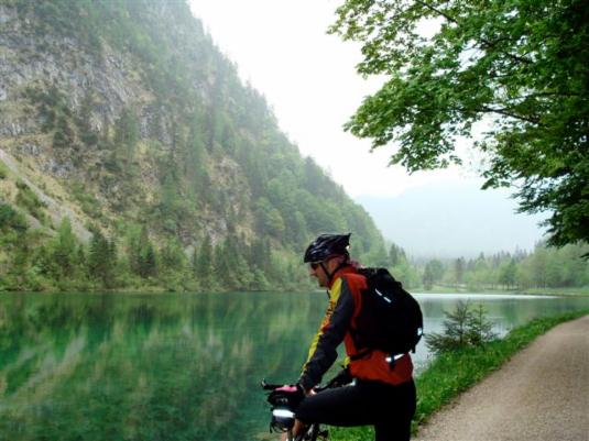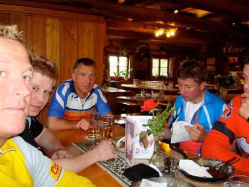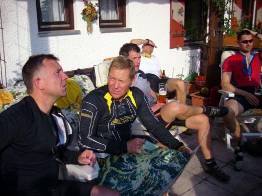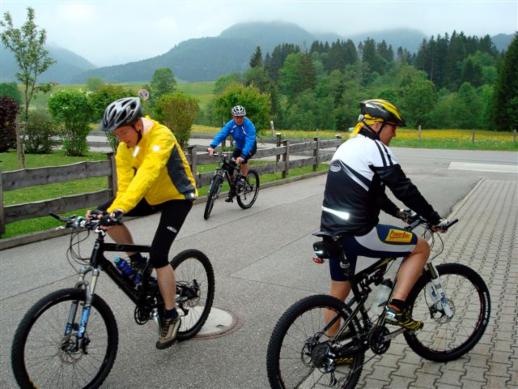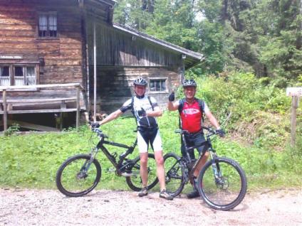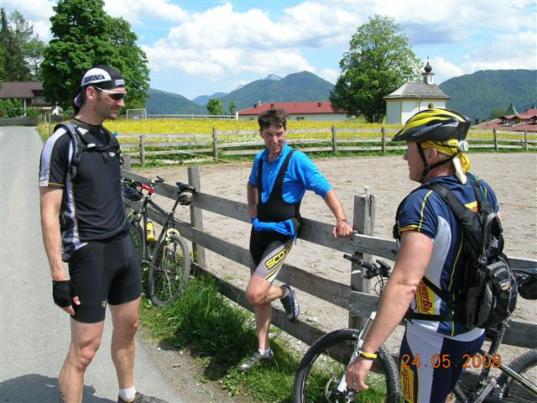 Anschließen ging es dann nach einem Russ ( Weizenbier mit Cola ) überwiegend über Schotterwege bergab bis nach Sachrang. Von dort haben wir dann eine Flachetappe eingelegt. Gerhard hat uns über verschiedene Verbindungswege ( die ich nicht wieder finden würde ) um den Walchsee geführt.